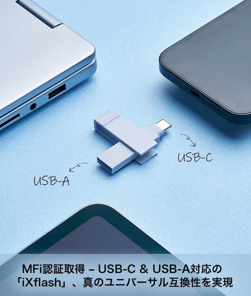 最新の「iXflash」は、急速に進化するデジタル社会において、多様なデバイスとシームレスに接続できるよう設計された革新的なフラッシュドライブです。