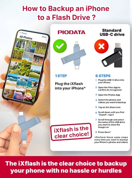 Not only is the iXflash easier to use, but it provides exponentially more useful functionality than a standard USB-C flash drive. The choice is clear, the iXflash is far superior and should be the only Phone Drive you reach for when you need to backup your precious memories.
