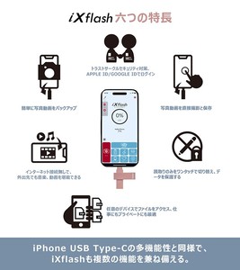 iPhone USB Type-Cの多機能性と同様で、iXflashも複数の機能を兼ね備える。