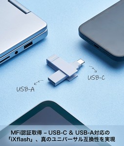 MFi認証取得 – USB-C & USB-A対応の「iXflash」、真のユニバーサル互換性を実現